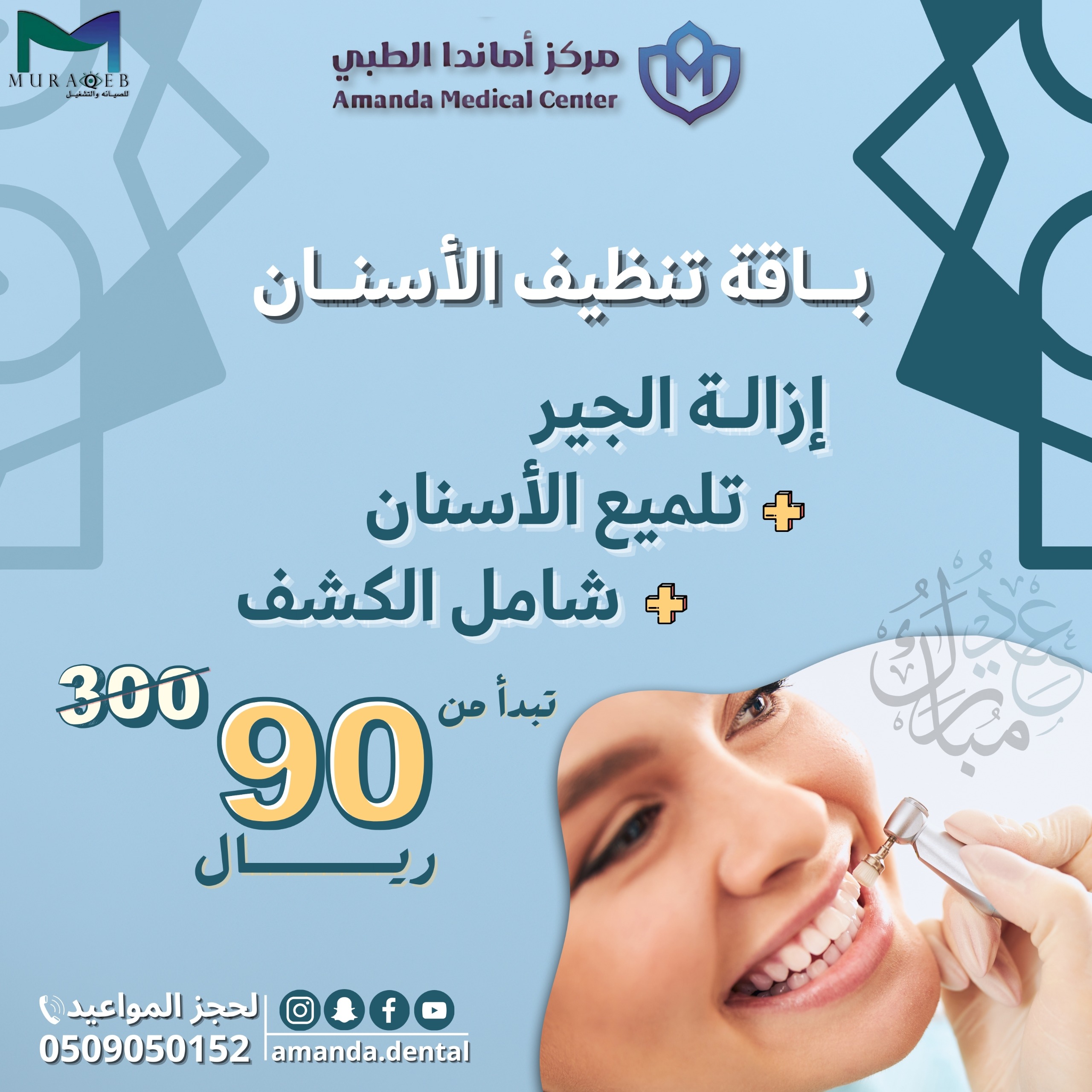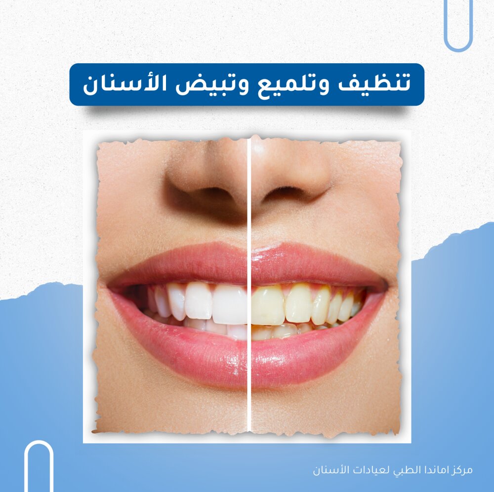 تنظيف وازالة الجير وتلميع وتبيض الاسنان